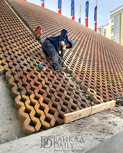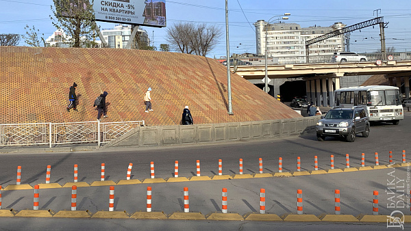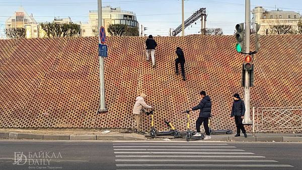 Элеваторские откосы почти готовы, и у подростков новое развлечение — восхождение по плиткам. Такого, конечно, никто не ожидал. А ещё в углубления плиток очень удобно впихивать мусор. Как его будут убирать? Пылесосом?