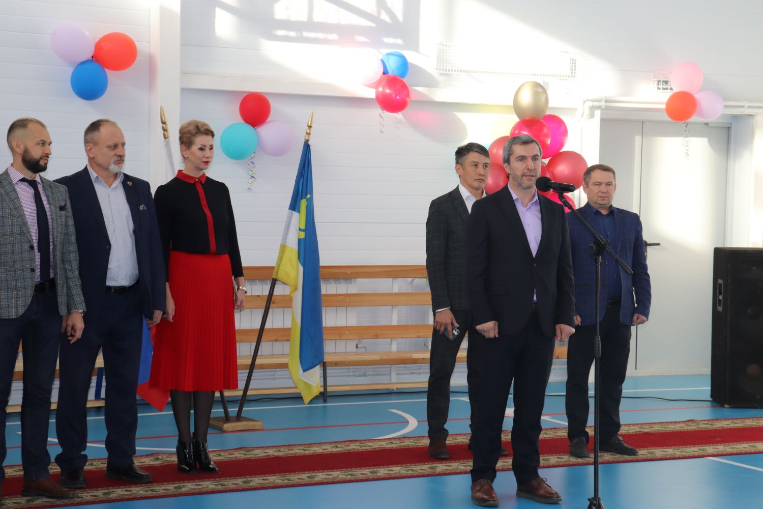 Сегодня в школе был настоящий праздник. На открытии присутствовал трёхкратный чемпион мира по киокусинкай-каратэ Хаид Мантаев. Именно он стал инициатором проекта по возведению модульных спортивных залов в школах ДФО.