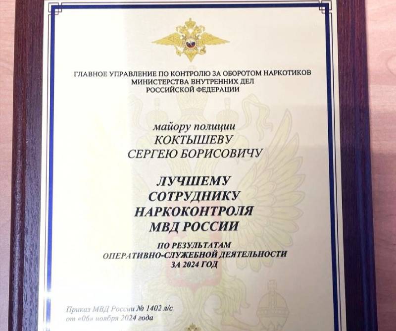Такая оценка дана ему Главным управлением по контролю за оборотом наркотиков МВД России по итогам оперативно-служебной деятельности за 2024 год.