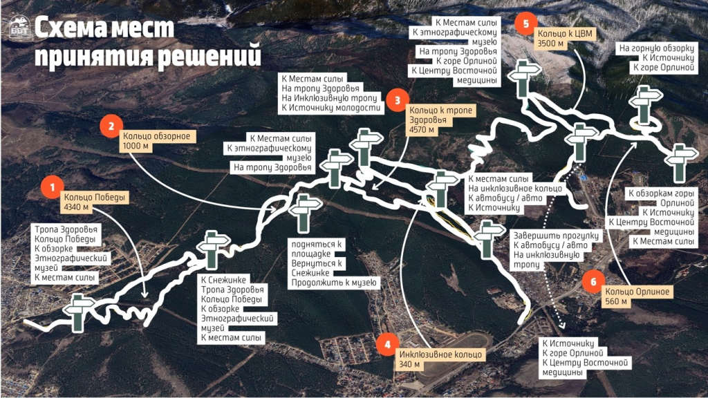 - Сделали акценты на видовые места, чтобы привлечь большее количество людей, которые занимались бы спортом. Вторая наша фишка – мы закольцевали наши сети троп. Это точки для принятия решений в разных ситуациях. Если человек мало подготовлен или он передумал, то он будет возвращаться не по той же тропе, а по другой по кольцу, – рассказал Дмитрий Ильдеров, проектировщик.
