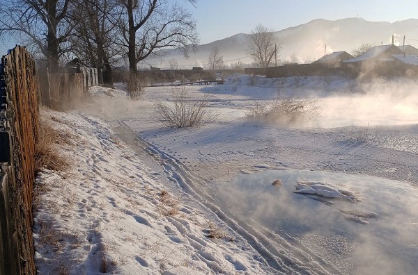 На снимке, который прислали тарбагатайцы, видно морозный пар над Куйтункой. Клубы поднялись над ней, создавая иллюзию «кипящей» реки.