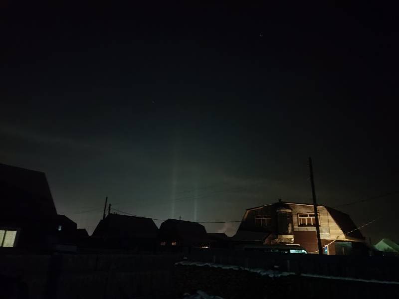 В прошлом году за день до Рождества – в ночь с 5 на 6 января – световые столбы появились в небе над Кяхтинским районом. «Такое явление можно наблюдать, когда на улице холодно и нет ветра», – пояснили тогда в группе «Кяхта-инфо.24/7».