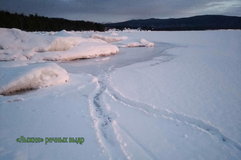 - По мере продолжения ледостава вдоль побережья Баргузинского заповедника по Байкалу начали активно перемещаться речные выдры. В бухте Давше заметил свежие следы четырёх особей. Они шли около берега вдоль гряды сокуй (разновидность льда на Байкале – прим.ред.), под которые периодически забирались через ходы гротов, вероятно, с исследовательскими целями. Попировав рыбой на льдине в ближайшей промоине, они дружной компанией пошли на север, накатывая свой удивительный «лыжный ход» по заснеженному льду, - пояснил Юрий Гороховский.