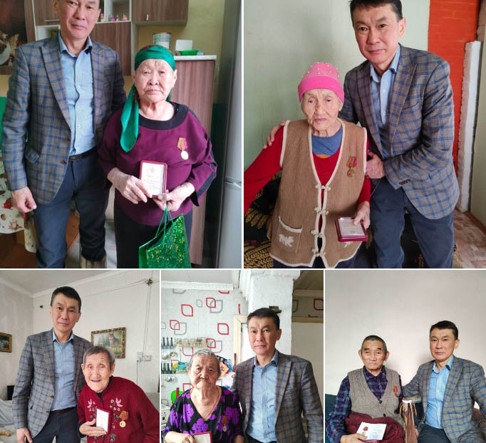 В Окинском районе Бурятии вручили юбилейные медали «80 лет Победы в Великой Отечественной войне1941-1945 гг.» труженикам тыла. Награды получили Мария Жигжитовна Баторова, Зинаида Самбуевна Манханова, Гасаран Ошорович Нахансаков, Тамара Шагжеевна Пронтеева, Софья Жигжитовна Цыбикова.