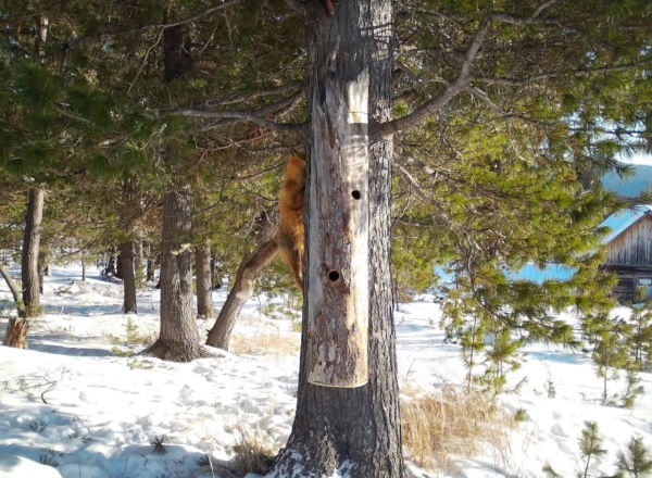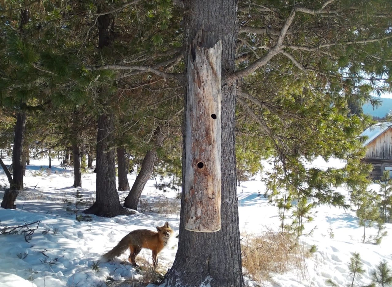 В Баргузинском заповеднике лису застали за необычным занятием – рыжая плутовка обворовала дуплянку, в которой лежат угощения для соболей.