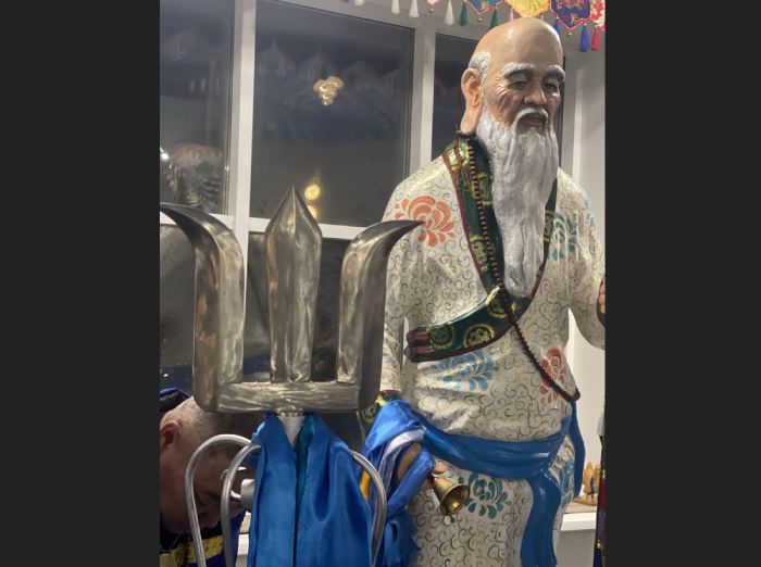 Представители местной религиозной организации шаманов «Тэнгэри» получили один из трезубцев Чингисхана от хранителей китайского комплекса имени легендарного полководца. Вообще трезубец был родовым знаком (тамга) потомков великого завоевателя. Как пояснили на официальной странице МРОШ во «ВКонтакте», любое дело – будь то разработка военной стратегии или дипломатическое взаимодействие, создание сводов «Великой Ясы» и «Нюуса Тобшо» – начиналось с обряда почитания Отца-Неба и было наделено благословением и дарованием защиты.