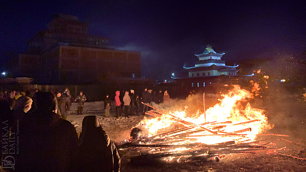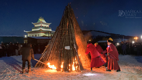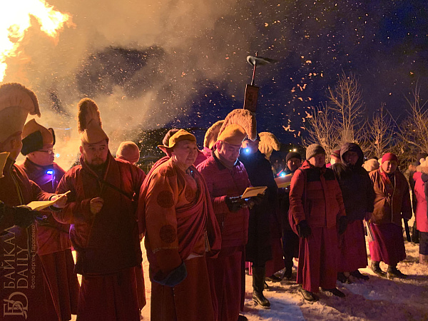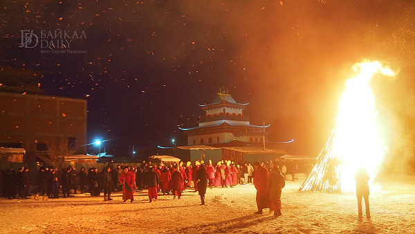 К вечеру ламы начали читать специальный молебен Дугжууба, посвящённый божеству Чойжал Сахюсану. После чего развели ритуальные костры. К этому моменту в дацанах традиционно собралось большое количество верующих.