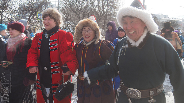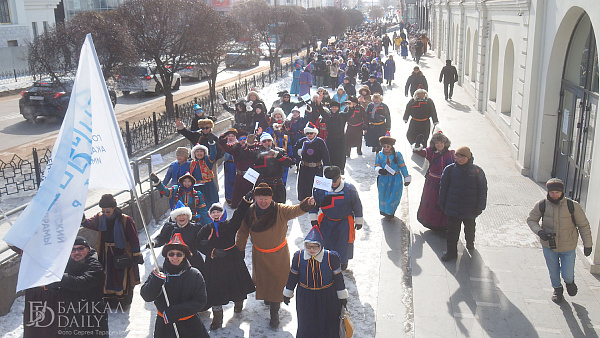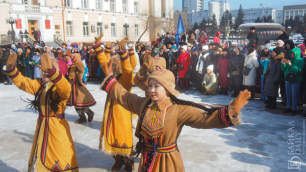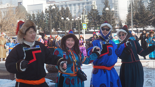 В субботу, 1 марта, в первый день Сагаалгана, в столице Бурятии состоялся третий флешмоб в национальных костюмах.