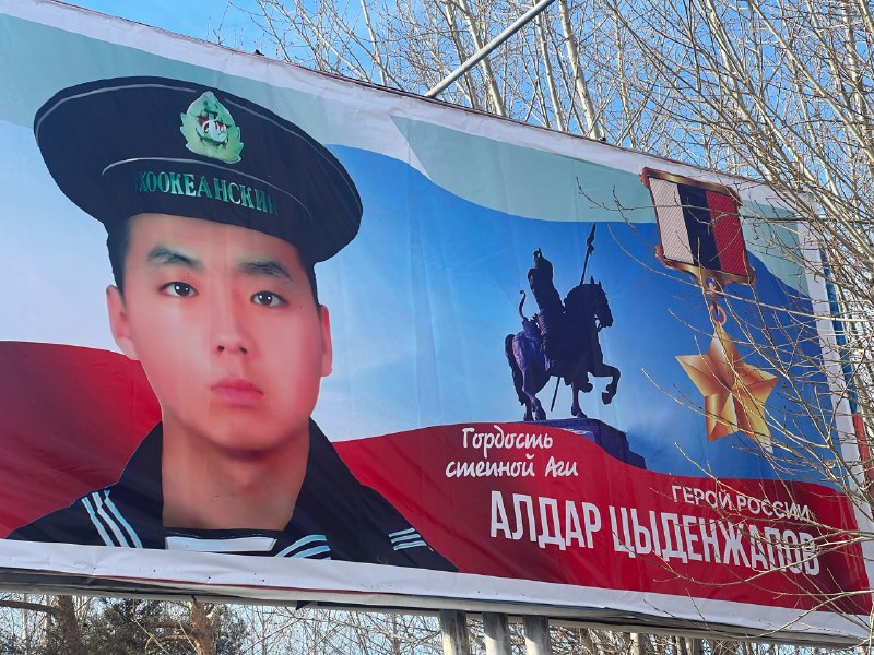 В административном центре Агинского Бурятского округа, в посёлке Агинское, установили баннеры с изображениями Героев Российской Федерации — отважных сынов Аги.