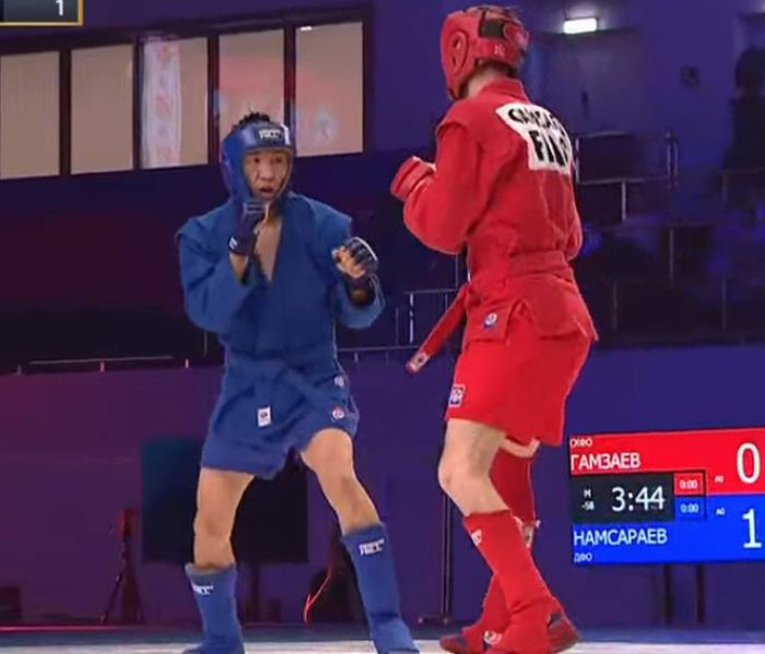 Самбист из Бурятии Алдар Намсараев завоевал на чемпионате серебряную медаль по боевому самбо в весовой категории до 58 кг. В финале он уступил Мухтару Гамзаеву из Дагестана.