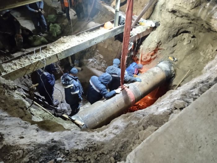 Ремонтно-восстановительные работы шли всю ночь, без перерыва. В том числе потребовались земляные работы. Затем в связи с большой деформацией поврежденного участка трубы вырезали и произвели вставку нового участка трубы длиной 3 метра 23 сантиметра.