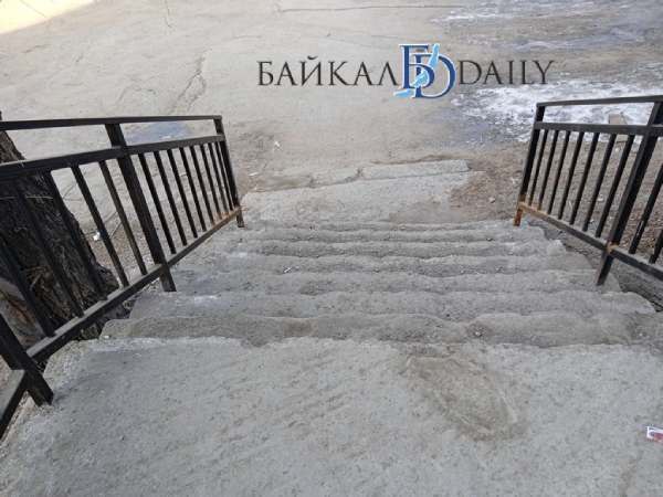 Справедливости ради, проблемы наблюдаются только у самого нижнего, маленького пролёта этой лестницы. По нему реально вскоре нельзя будет ни подняться, ни спуститься. Четыре других, больших пролёта выше пока находятся во вполне себе нормальном состоянии. Хотя ещё зимой «Байкал-Daily» отмечал, что бетон залит криво-косо, а на новых перилах видна ржавчина.