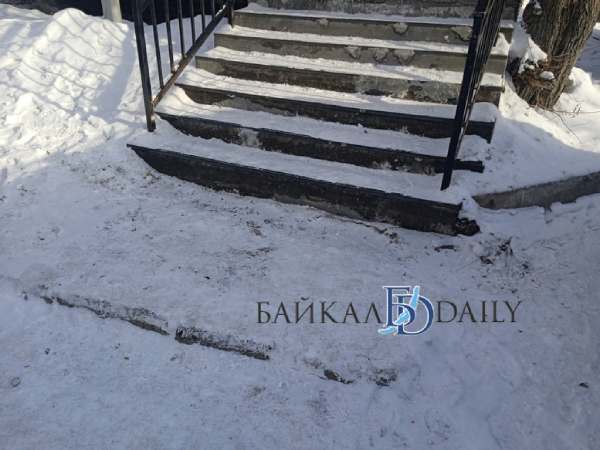 «Байкал-Daily» проверил. Со ступенек внизу лестницы сняты металлические уголки, а бетон на глазах превращается в крошку.