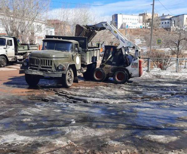 В столице Бурятии для ликвидации талой воды привлекается дополнительная техника, сообщает улан-удэнский комбинат по благоустройству. В Улан-Удэ работают 12 машин комбината, занимающихся откачкой воды. Диспетчерская служба оперативно принимает заявки от жителей города и распределяет технику по районам.