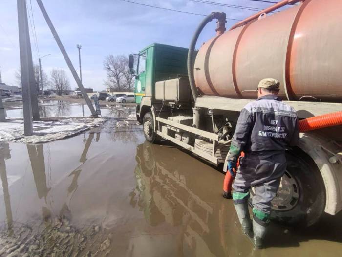Кроме ликвидации воды, продолжается уборка с улиц снежной массы и песка. В мэрии отметили, что за каждым районом закреплены уборщики территорий. Свою работу они начинают ежедневно с 6:00 утра.