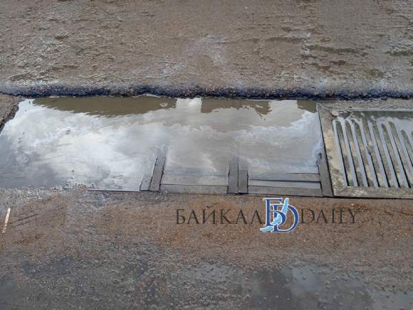 Причиной скопления воды на этом участке стало засорение ливневой канализации песком во время проведения работ на сетях подрядной организацией. «Ливнёвку» на этом вечно затапливаемом участке сделали во время ремонта улицы Балтахинова два года назад. «Байкал-Daily» проверил: она, действительно, забита песком.