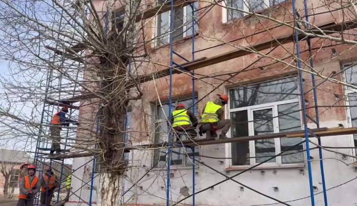 «Готовят бетонную стяжку на первом этаже, начался демонтаж старых конструкций, сгнивших перегородок. Приступили к штукатурным работам в классах. На объекте трудятся 45 человек», - сообщил мэр.