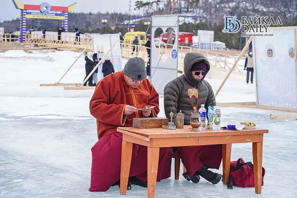 Сегодня православный священник окропил участки для рыбалки, сцену и призы святой водой. Кроме этого, по традиции прошёл буддийский обряд почитания и умилостивления хозяев местности. Ритуал провёл проректор Буддийского университета Жаргал Багша.