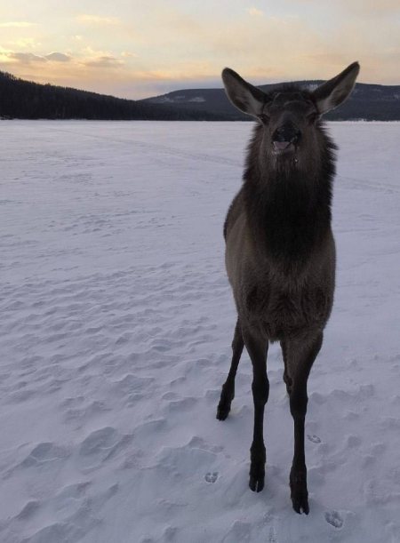 В Нижнеилимском районе Иркутской области сотрудники охотнадзора пришли на помощь самке благородного оленя. Бродячие собаки выгнали животное на лёд.