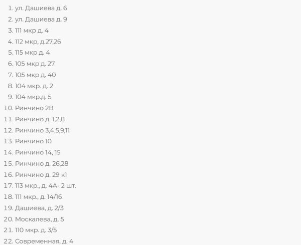 Список адресов, по которым находятся контейнеры, в Октябрьском районе