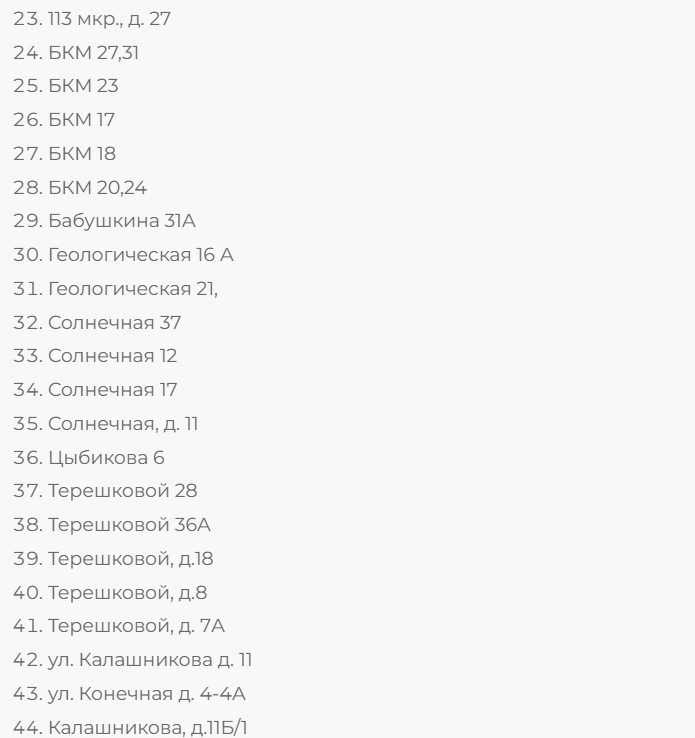 Список адресов, по которым находятся контейнеры, в Советском районе