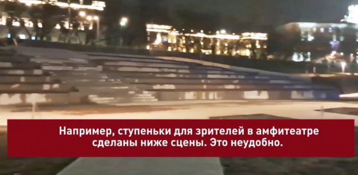 Как сообщили общественники в своём telegram-канале, амфитеатр и другие конструкции разместили прямо около оживлённой проезжей части и парковки. Не предусмотрели и плотную полосу озеленения для защиты территории от шума и вредных воздействий.