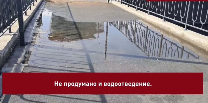 Деревянные дорожки не доделали. У амфитеатра нет системы водоотведения и он начал разрушаться – мост уже просел. Не хватает принятых по актам урн и деревьев. Шезлонги и дождеватели и вовсе отсутствуют.