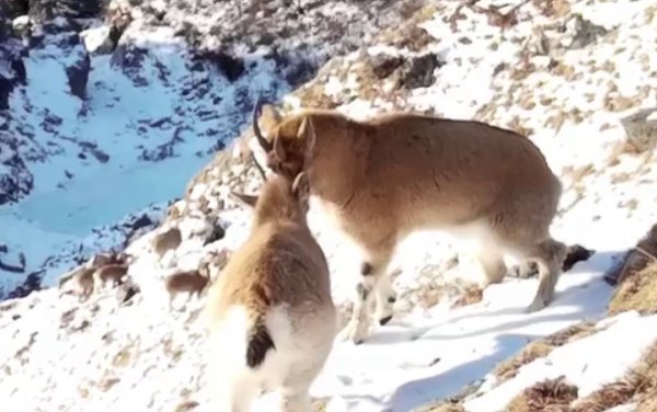 В Тункинском национальном парке Бурятии фотоловушка сняла забавные игры двух годовалых горных козлят. Они пока ещё неумело бодались своими маленькими рожками.