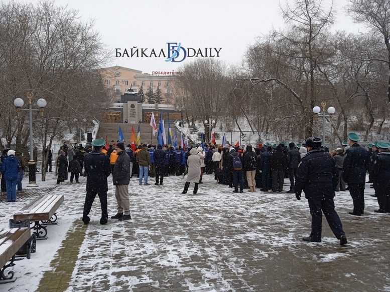 Митинг прошёл несмотря на тяжелейшие для апреля погодные условия: в Улан-Удэ с утра зарядил мокрый снег.