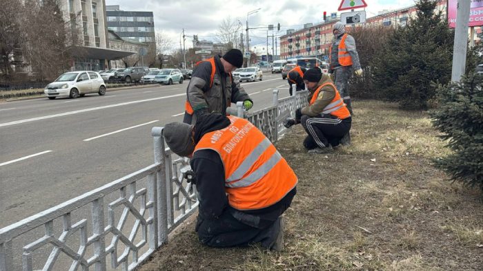 Каждый год с наступлением весны сотрудники комбината по благоустройству при мэрии Улан-Удэ начинают покраску металлических ограждений на улицах города.