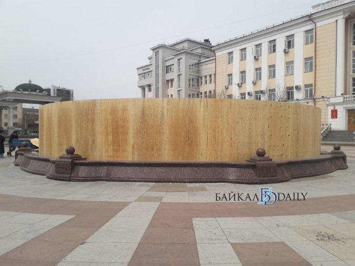 Кстати, фонтан на Театральной площади закрыли фанерными щитами. В нём в марте сломалась одна из ваз. Видимо, обновят не только разрушившуюся конструкцию, но и весь объект. Этот фонтан находится на балансе Оперного театра. Его сдали в 2011 году к празднованию 350-летия добровольного вхождения Бурятии в состав Российского государства.