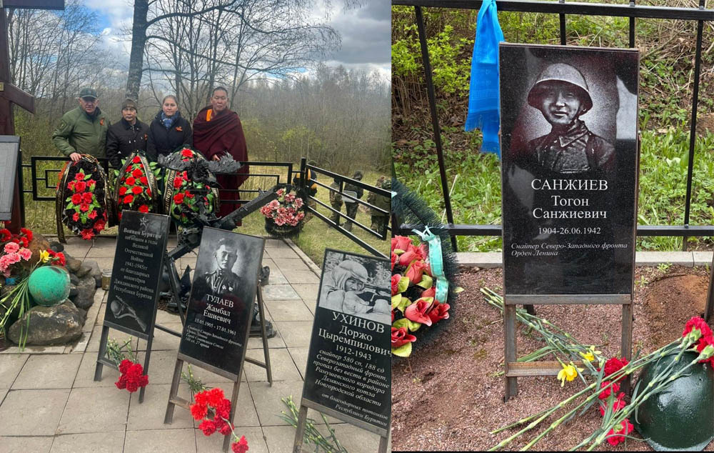Сотрудники полномочного представительства Бурятии в Москве приняли участие в торжественном открытии мемориальных плит землякам, участникам Великой Отечественной войны в Новгородской области. Теперь на Валдае в урочище Плещевицы появились мемориальные плиты Жамбылу Тулаеву и Доржо Ухинову, а в деревне Большое Замошье – снайперам Семëну Номоконову и Тогону Санжиеву.