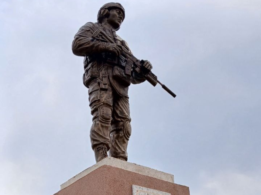 Памятник в бронзе с изображением современного воина увековечил имена павших героев участников СВО. Автором проекта мемориального комплекса является почётный архитектор Российской Федерации, заслуженный строитель Агинского Бурятского округа Болот Дондоков. В центре мемориального комплекса установлен памятник в бронзе с изображением современного воина. Его автором является известный российский скульптор Болот Цыжипов. Монумент имеет собирательный образ всех героев, но выполнен с образа Героя Российской Федерации Эдуарда Норполова.