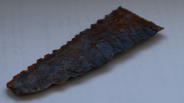 - Скорее всего, это был наконечник копья или дротика, но, возможно, и нож. Для каменного ножа необязательно наличие выраженной рукояти. Пластина, имеющая режущую кромку и удобно лежащая в ладони, прекрасно позволяла проводить режущие манипуляции с мясом, шкурами и травянистыми волокнами, – отмечает учёный.