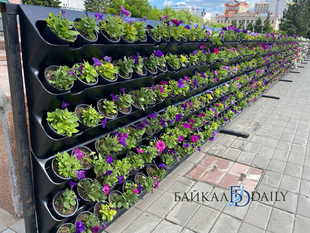 «Цветочное» благоустройство на площади Советов в Улан-Удэ подошло к концу. Последним штрихом стала длинная цветочная стена, которую установили на днях. Она «выросла» прямо перед знаменитым памятником Ленину.