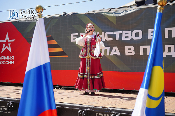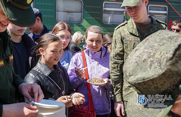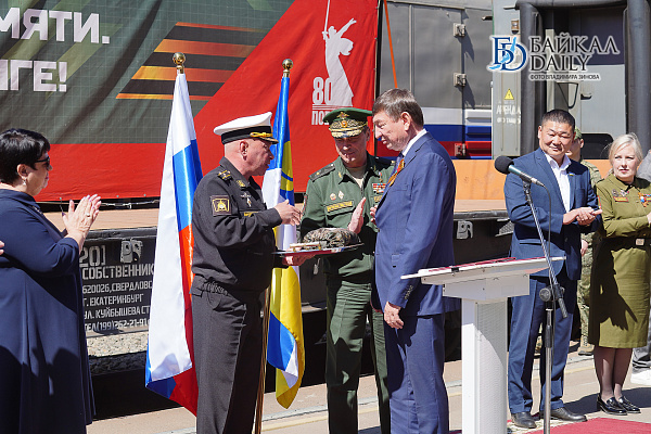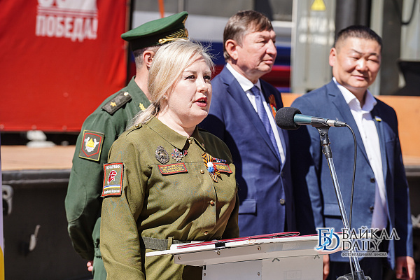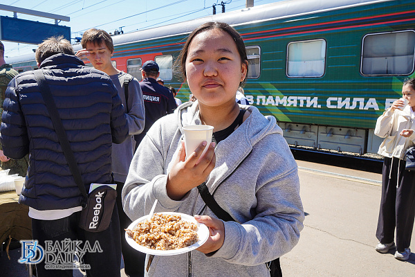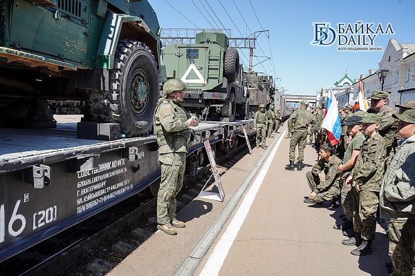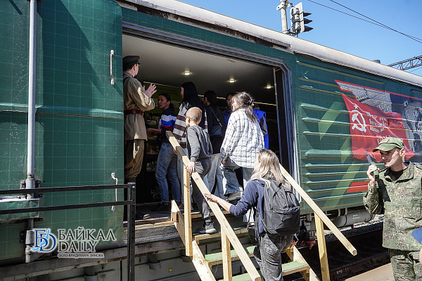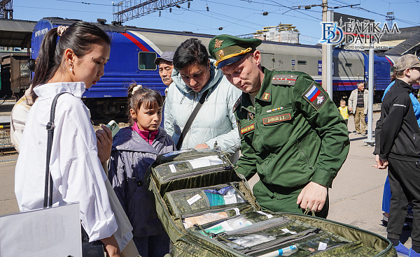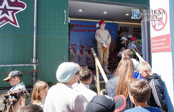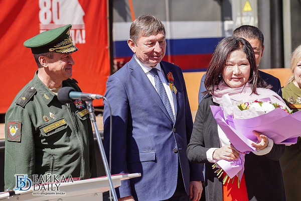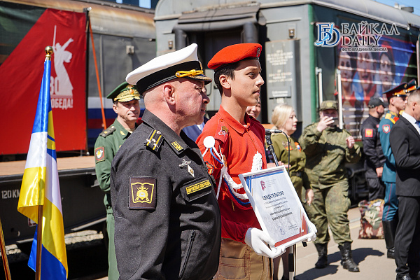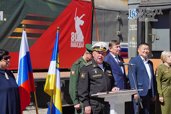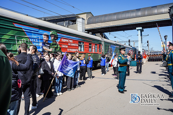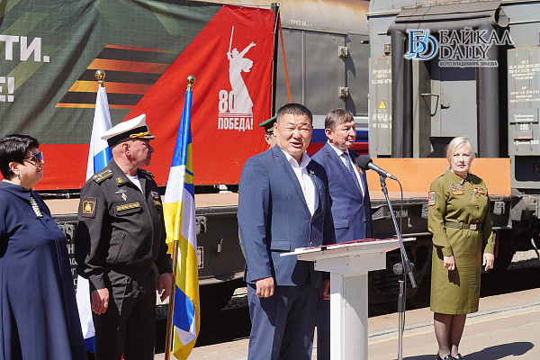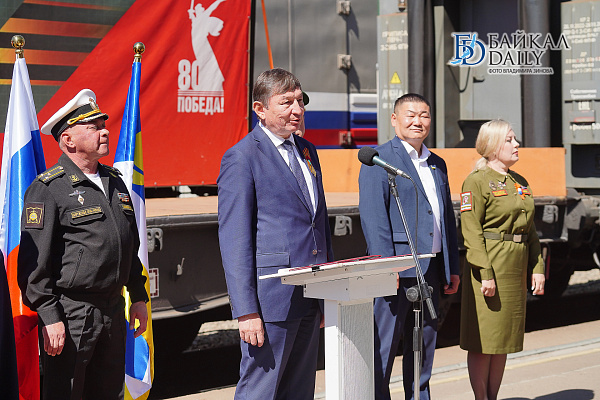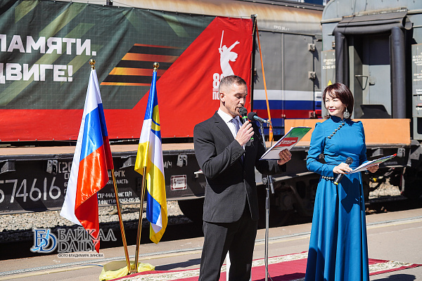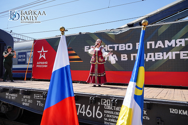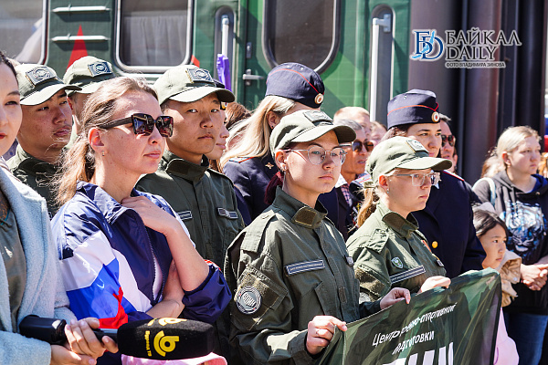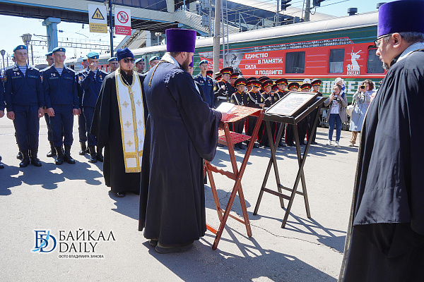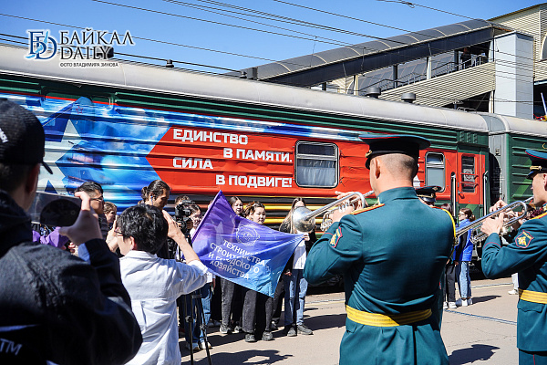 На железнодорожный вокзал города Улан-Удэ прибыл уникальный агитационный поезд Министерства обороны Российской Федерации «Единство в памяти. Сила в подвиге» (возрастное ограничение – 0+). Состав, совершающий масштабный тур по регионам страны, встретили представители администрации, духовенства, общественных организаций и местные жители.