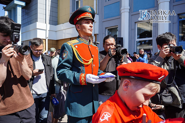 Также состоялось посвящение 26 юношей и девушек в ряды «Юнармии» — ребята принесли торжественную клятву. Руководитель акции Сергей Собокарь вручил представителю отряда «Юные патриоты» сертификат о присвоении имени Героя Российской Федерации, старшего лейтенанта Сергея Бакина. А также юнармейскому отряду «Гвардеец» было присвоено имя Героя Российской Федерации, старшего лейтенанта Балдана Цыдыпова.