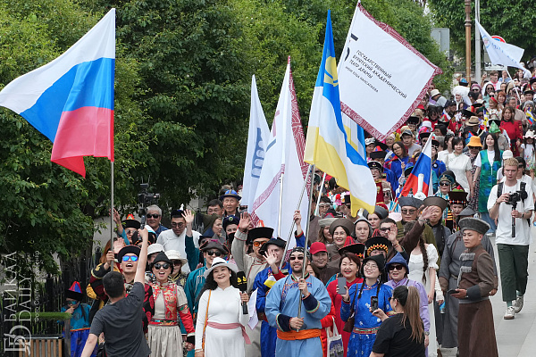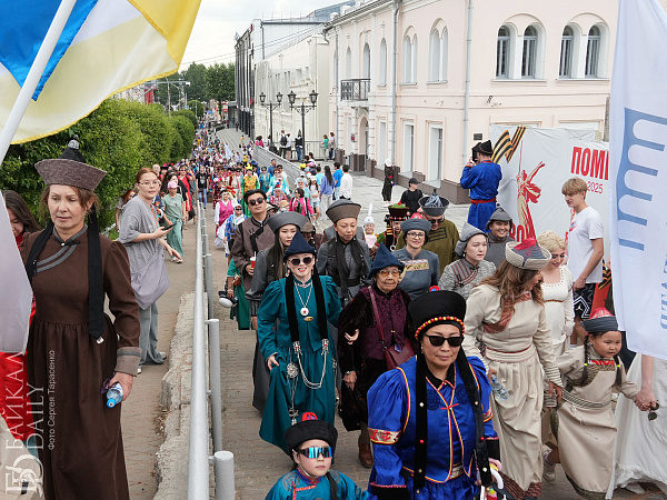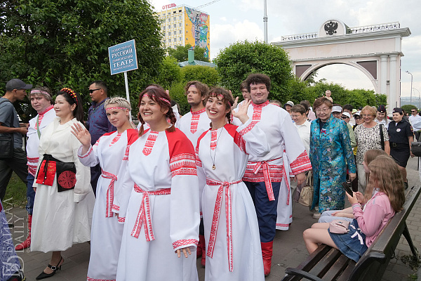 На площади Революции состоялся небольшой праздничный концерт, а затем колонна направилась вверх по улице Ленина до Театральной площади. На всех участках пути к яркой колонне в национальных одеждах могли присоединиться все желающие.