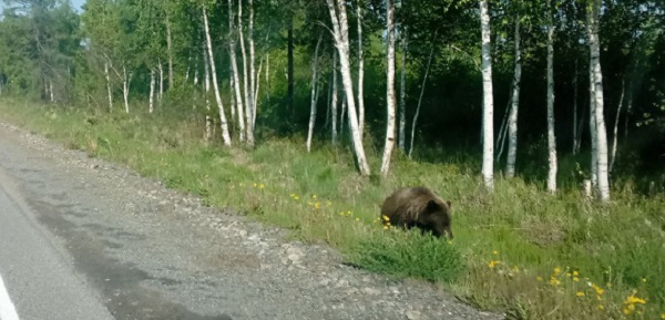 Бурого хищника запечатлели на обочине дороги. Фото с ним выложили в группе «Кабанск-инфо 24/7». О животном сообщили в Бурприроднадзор.