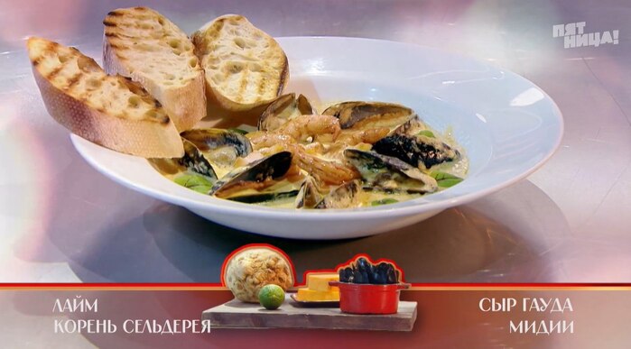Во втором туре шеф-поварам предложили простой набор продуктов, а домохозяйкам - дорогие продукты, которые используют при готовке в ресторанах. Жительнице Северобайкальска достались лайм, сыр, мидии и корень сельдерея.