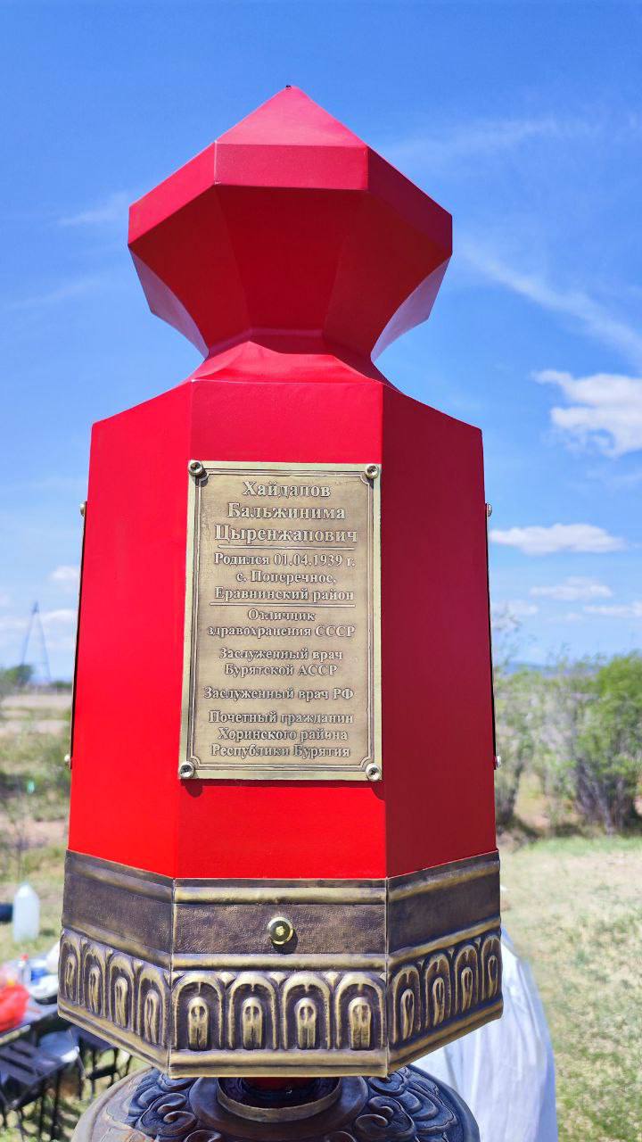 14 июня в поэтическом саде камней на границе Хоринского и Еравнинского районов открыли и освятили именное сэргэ-хурдэ Бальжинимы Цыренжаповича Хайдапова. Об этом сообщили в группе «Хоринск-инфо.24/7».