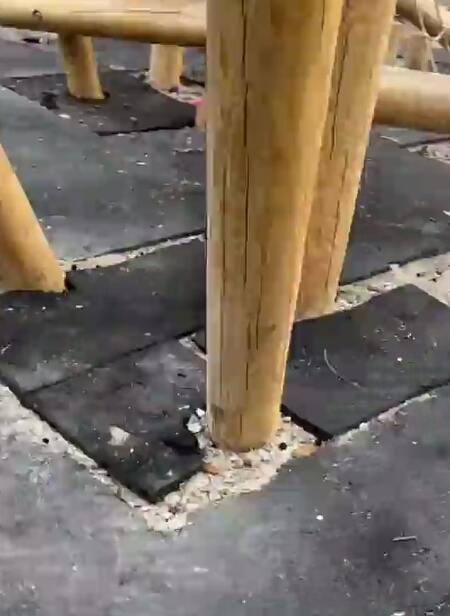 На покрытии на детской площадке образовались проплешины. Фонарные столбы не закрепили как следует, забор тоже шатается и местами рассыпается, а парковка для велосипедов разрушается. Единственное, что пока сохранилось – арт-объект в виде Байкала.