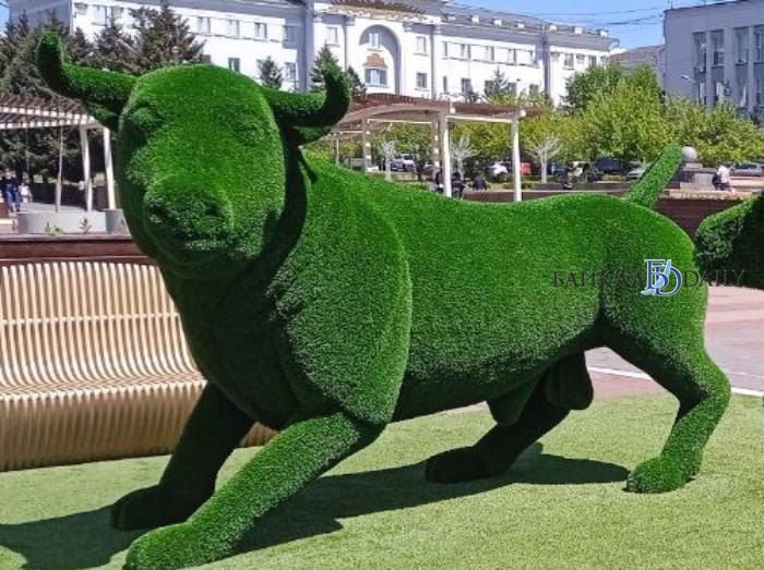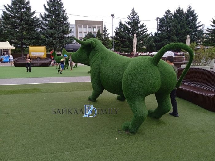 Зелёного топиарного быка, который иногда стоит в зоне отдыха на площади Советов в Улан-Удэ, лишили мужского достоинства. Об этом «Байкал-Daily» сообщили читатели: