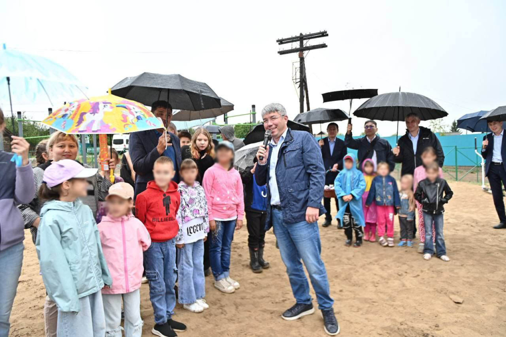 - По программе Юрия Петровича Трутнева «Дальневосточные дворы» в с. Мухоршибирь открыли 1000 квадратов детской радости. Даже проливной дождь не помешал празднику – дети счастливы, площадка уже в деле! – рассказал Алексей Цыденов.