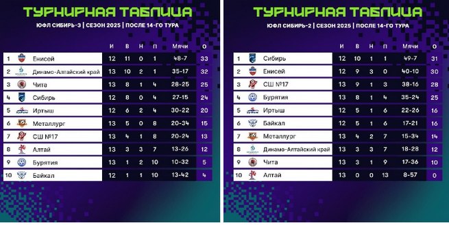 Их коллеги на год старше (ЮФЛ Сибирь-2, U16, 2009 г.р.) начнут матч в 14:00. Тут занимаемые места прямо противоположны.