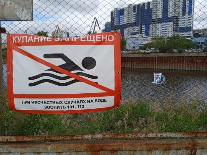 В популярном паблике Аноним 03 обратили внимание на плакат, запрещающий купаться в затоне у торгового центра «Пионер».