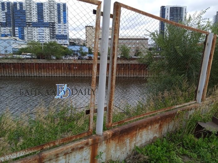 Действительно, искупаться со стороны, на которой размещён баннер, явно не удастся: можно только перелезть через забор и прыгнуть в воду с высоты четырёх метров.