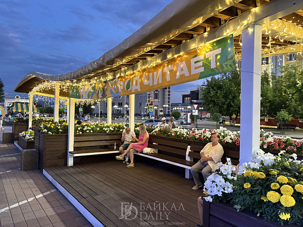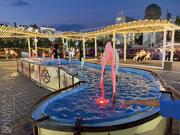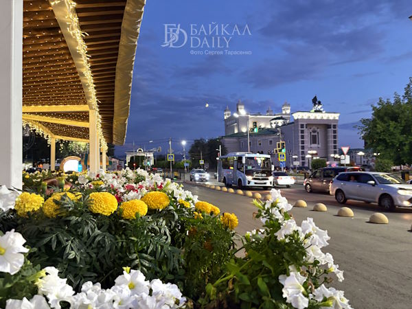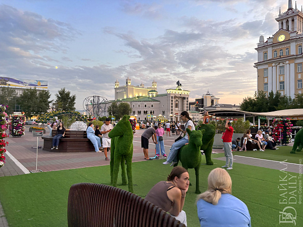Площадь Советов по вечерам напоминает заморский курорт. Улан-удэнцы и гости столицы томно прогуливаются средь клумб и топиарий. Всё иллюминирует.