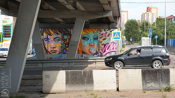 Граффити на развязке Трубачеева и Бабушкина, сделанные командой «Brain Mash» из Новосибирска в 2019 году, были изрядно подпорчены весенними водами. И, о чудо! — их отмыли! А ещё здесь появилась дополнительная полоса для разворота.