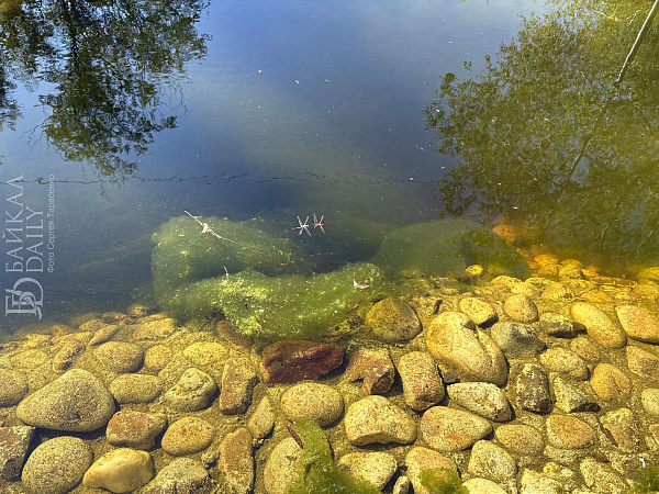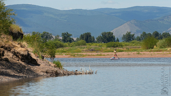 В этом году уровень воды в Селенге невысокий, удалось пройти с Острова Богородского на Измайловский. С него очень чётко видно место слияния Уды с протокой Селенги Забокой. Две разные краски.